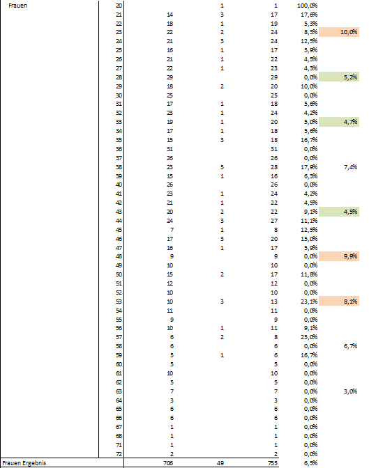 Risiko bei Frauen von ca. 25 bis 42 Jahre scheint unterdurchschnittlich _________________ Meine Investments (aktualisiert 12/24):