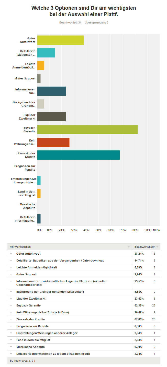 Bei den Kriterien für die Auswahl eines neuen P2P Kreditmarktplatzes wurden vor allem gewählt:
