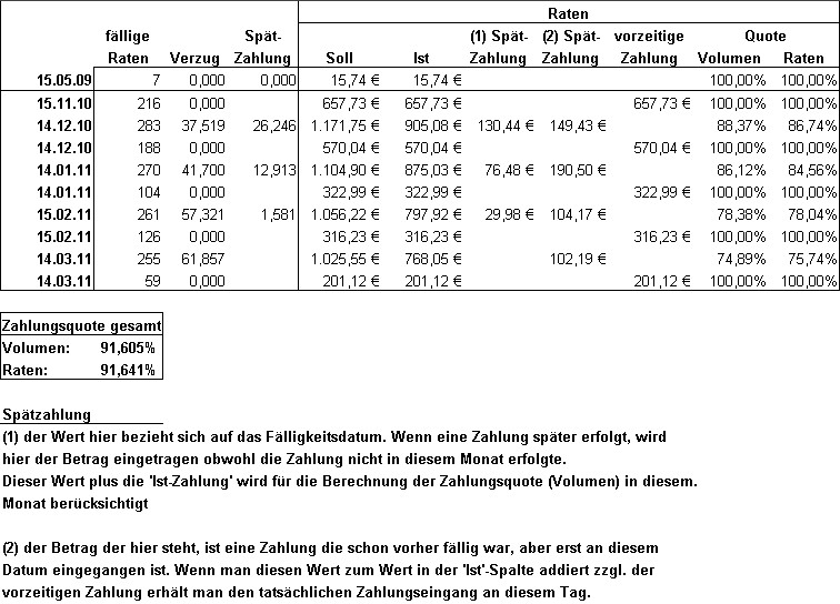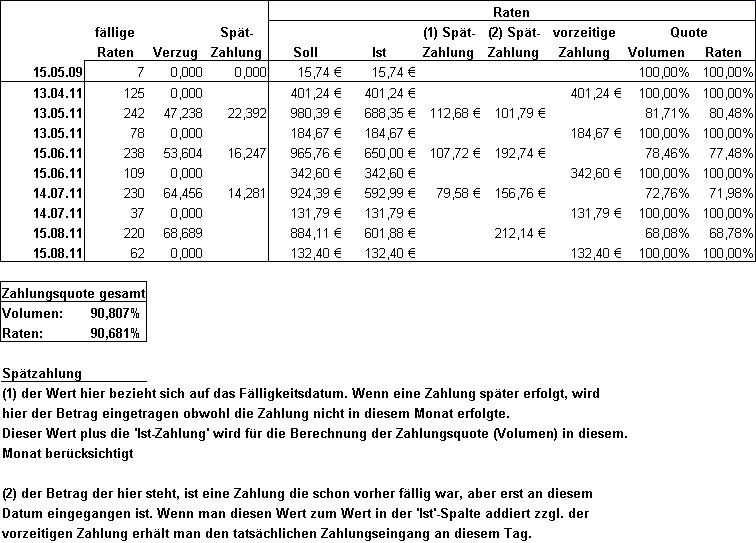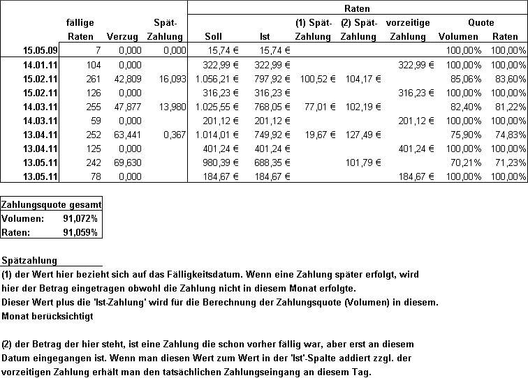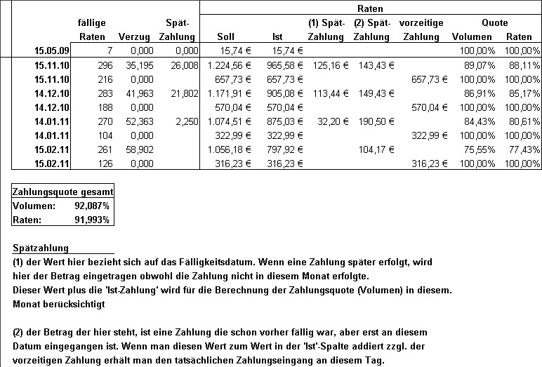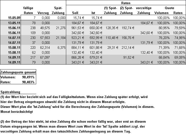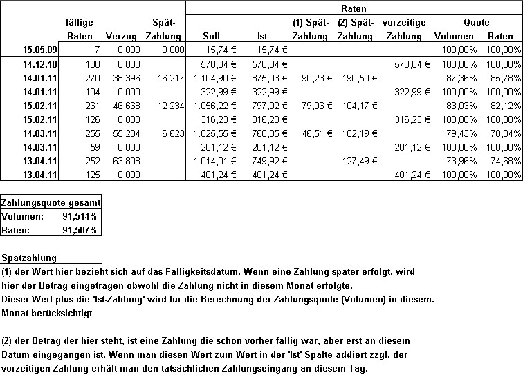PS bei den Anzahl der fälligen Raten hat sich in den Vormonaten ein Fehler eingesclichen und wurde jetzt korrigiert.