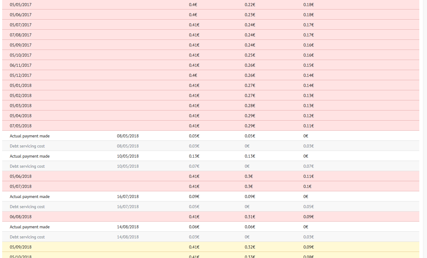Kann mir das einer erklären? Ich sehe nicht dass die Tilgungen/Zinsen kleiner sind wenn ein Kredit nach verpasster Rate wieder bedient wird. Sehe ich was falsch? _________________ 28 Auxmoney-Projekte, davon 27 abgeschlossen, aber die Hälfte dann durch Auxmoney* gecancelt. Das letzte Projekt läuft bis 2020