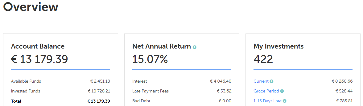 Ich muss aber feststellen, dass einige Anbieter zurzeit gerade eine sehr hohe Verzugsquote haben, wie zum Beispiel Lime Zaim mit nur rund 23% die nicht im Verzug sind laut der offiziellen Statistiken - bei mir sind alle im Verzug (gekauft im Dezember 2018). Die bieten auch seit einiger Zeit keine Loans mehr an soweit ich das mitbekomme, mit rund 2 Millionen ausstehend.. Hoffen wir mal, dass das keine schlechten Vorzeichen sind, denn eigentlich ist das Anbieter, der gute Geschäftszahlen hat und Gewinn gemacht hat.